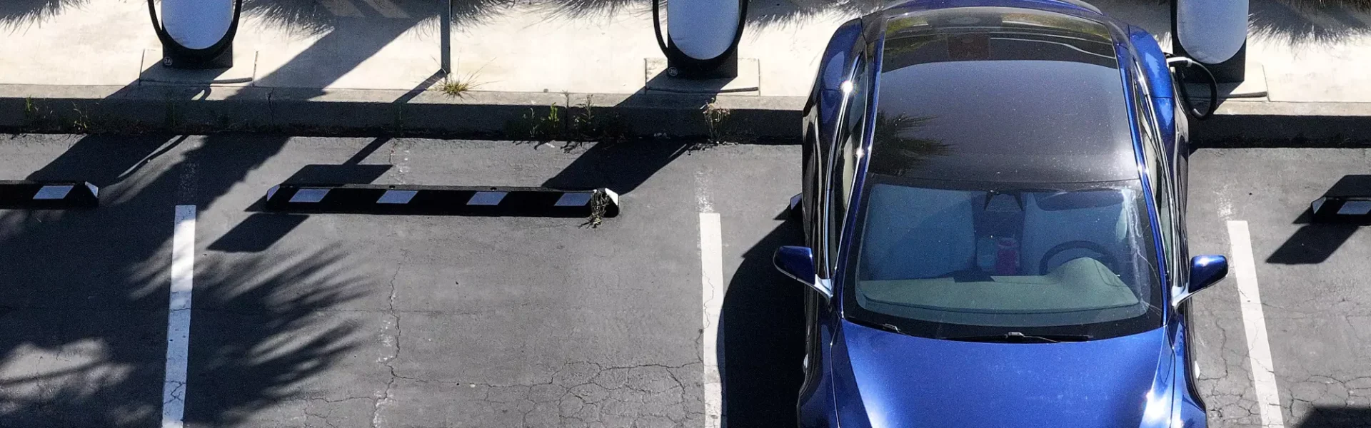 Culver City, CA – July 06: Teslas charge at a Tesla Supercharger station at the Westfield Culver City shopping mall on Sunday, July 6, 2025 in Inglewood, CA. (Carlin Stiehl / Los Angeles Times)